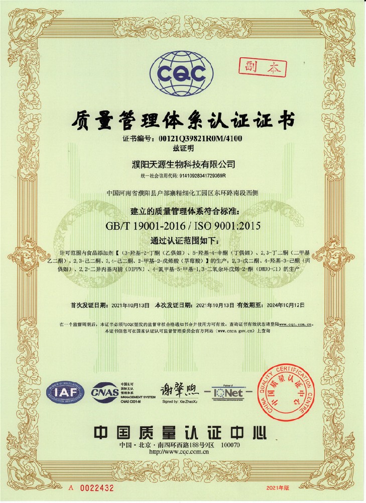 质量管理体系认证证书