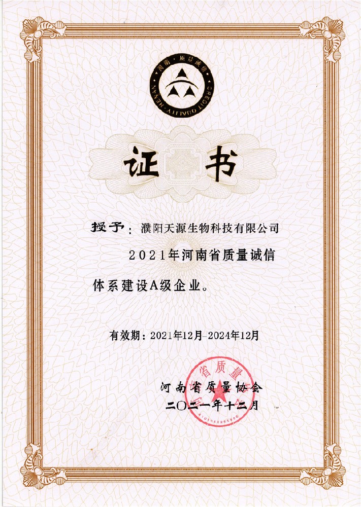 河南省质量诚信体系建设A级企业